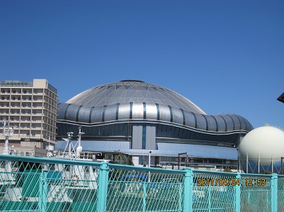 | 12:53 | なんばの南あたりで,西に曲がり神戸を目指す。京セラドームが見えてきましたが,川を渡ることができず大きく迂回することに。 京セラドームでは,就活の学生が大挙してドーム内に入っていきました。