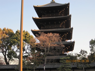 | 6:00 | 出発から10分で東寺へ。五重塔が有名。境内にある洛南高校も有名です。